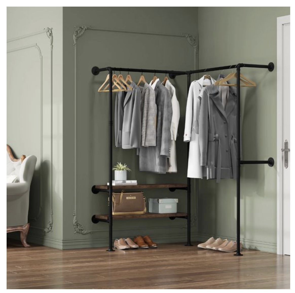 Of je nu een hoek in de slaapkamer, hal of kleedruimte wilt benutten, deze kapstok is flexibel inzetbaar en eenvoudig te monteren dankzij de duidelijke handleiding en bijgeleverde accessoires. Combineer hem met andere industriële meubels voor een consistent geheel.